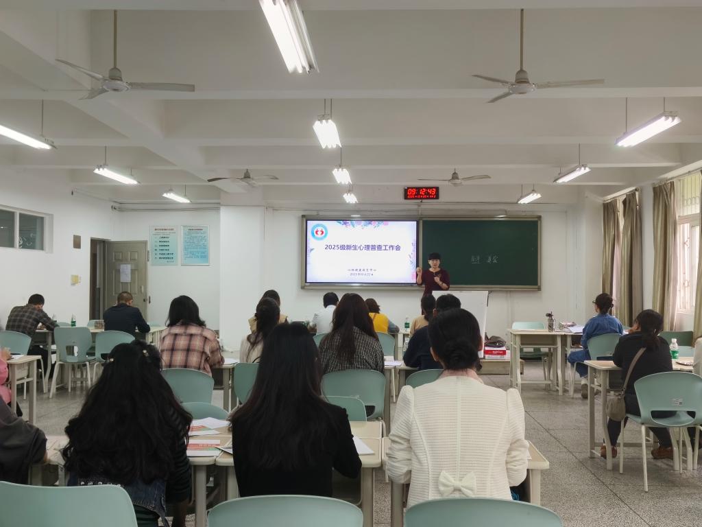 2025年10月22日上午,2025级新生心理普查反馈工作会在尚学楼006教室举行。各二级学院分管学生工作的领导、2025级全体辅导员、心理中心主任及负责心理测评工作教师参加了此次会议。